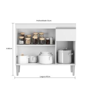 Características: Material da Estrutura: MDP Acabamento: Pintura UV Escala de Brilho: Fosco Possui 3 portas Possui 1 gaveta Dobradiças em aço Puxadores embutidos Pés em PVC com regulagem Corrediças metálicas Design moderno Acompanha Tampo: Não