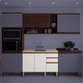 O Balcão para pia da linha Macadâmia é um móvel indispensável para a cozinha: espaçoso, moderno e com um visual inspirado no que há de mais atual em tendências de móveis, ele remete ao estilo planejado, com a praticidade de estar pronto. Além disso, esse módulo é sinônimo de qualidade também na escolha das ferragens: as portas são equipadas com dobradiças com caneco 35mm e sistema de amortecimento slow motion - garantia de mais suavidade nos movimentos de abertura e fechamento. Possui ainda uma gaveta com laterais e fundos super altos - pura praticidade e segurança. As duas gavetas baixas contam com eficientes corrediças telescópicas – sinônimo de firmeza, deslizamento mais suave e abertura de extração total – além de divisor interno de talheres. Também os pés possuem regulagem de altura para mais comodidade. Os puxadores em estilo perfil, no tom Champagne, harmonizam perfeitamente com a sofisticada combinação de cores de portas e caixaria. Apesar da estética de móvel planejado, a linha Macadâmia é totalmente modulada – por isso é possível combinar este Balcão com outros itens da mesma linha e criar a sua própria cozinha dos sonhos.