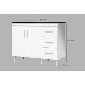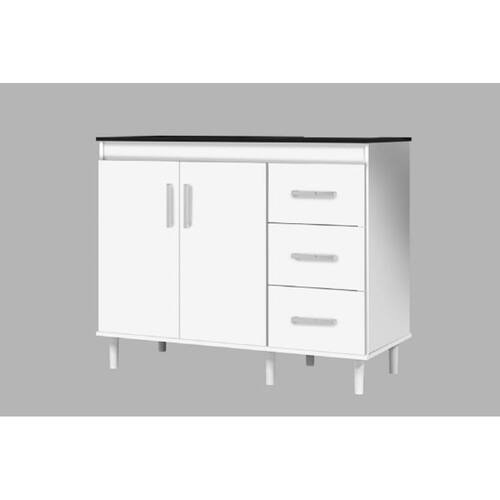 CARACTERISTICAS: *Fabricado em MDP *Tampo em MDP 15 mm *3 gavetas com corrediças telescópicas *2 portas com dobradiças metálicas *Pés em plástico