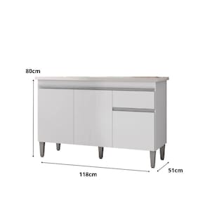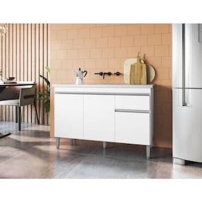 Características do ProdutoMaterial da Estrutura: 100% MDPPeso Suportado: 28 Kg distribuídosPossui Tampo: SimAcabamento: Pintura UVPossui Portas: SimQuantidade de Portas: 3 PortasMaterial da Porta: MDPTipo de Porta: ConvencionalPossui Gavetas: SimPossui Puxadores: SimTipo de Puxador: CavaMaterial dos Puxadores: PVCPossui Pés: Sim