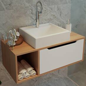 Balcão Gabinete Para Banheiro 1 Porta BN3644, ideal para inovar o seu banheiro com toque luxuoso e ao mesmo tempo refinado. Estrutura em MDP de 15mm, proporcionando maior durabilidade e resistência a peça, contando com acabamento em pintura UV. Composto por 1 porta com articulador e dobradiças metálicas e 1 nicho lateral para armazenar itens. Suportando 10kg o tampo e 3kg o nicho. Perfeito para deixar seu ambiente produtivo, proporcionando uma ambientação elegante e moderna. Este móvel chegará na sua casa separado em 1 volume.