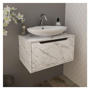 Balcão Gabinete para Banheiro Suspenso BN3646 Mármore Branco - Tecnomobili