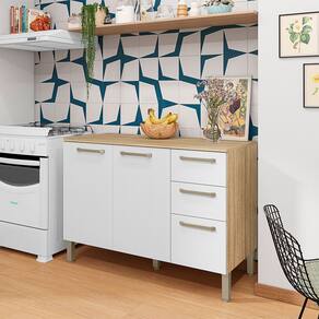 O Balcão Gabinete para Cozinha Tati é a escolha perfeita para quem busca praticidade e organização no ambiente da cozinha. Com 2 portas e 3 gavetas, este móvel oferece espaço suficiente para armazenar utensílios, panelas e diversos itens de uso diário, mantendo tudo sempre em ordem e ao seu alcance.