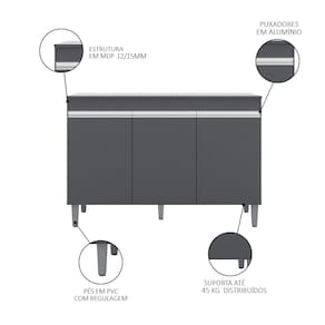Se você está procurando um balcão que seja resistente, bonito e funcional, o Balcão Gabinete Para Pia 120cm 3 Portas Com Tampo Manu Cinza, da AJL é uma ótima opção, confira!