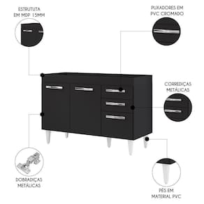 Na hora de escolher o móvel que vai compor o ambiente é preciso estar atento, afinal com cozinhas cada vez menores, deve ser compacto e funcional assim como o Balcão Gabinete Para Pia 120cm 3 Portas Sem Tampo Suécia Preto, da Lumil.
