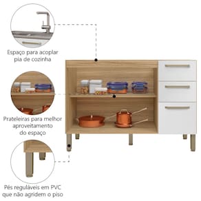 MODELO: Balcão de Cozinha Para Pia 2 Portas 3 Gavetas 1,20m Versalhes