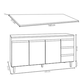 Balcão: 155 cm x 80 cm x 51 cm.