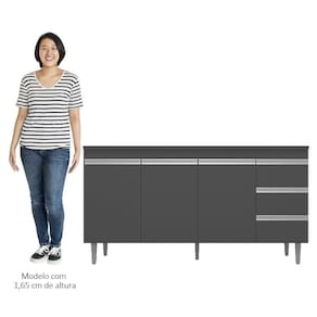 Se você está procurando um balcão compacto, prático e funcional para a sua cozinha o Balcão Gabinete Para Pia 160cm com Tampo 3 Portas Andréia Cinza, da AJL Móveis é perfeito!