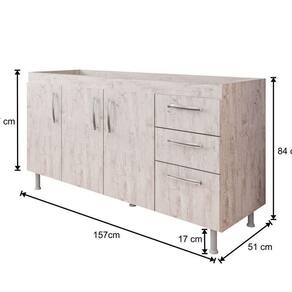 Altura: 84 cm | AssemblyRequired: Sim, sugerimos a contratação do nosso serviço de montagem (para os CEPs em que o serviço está dispon | Color: Rústico | ColorFamily: Rústico | ColorSimple: Rústico | ColorSupplier: Rústico | Cor: Rústico | Gênero: Unisex | Largura: 157 cm | Manual: Sim | Material: MDP | MaterialFamily: MDP | Model: Nathan | Origem: | OriginCountry: | OriginState: PR | Peso: 47 kg | ProductContents: 1 Balcão | ProductHeight: 84 | ProductInstructions: Produto para uso em ambiente interno, nao devendo ficar exposto ao sol, calor e umidade excessivos. | ProductLength: 51 | ProductWarranty: 90 dias após o do produto | ProductWeight: 47 | ProductWidth: 157 | Profundidade: 51 cm | Requere montagem: Sim | SizeDescription: 84 x 157 x 51 cm | SupplierSimpleName: Balcão Gabinete Para Pia 160cm Nathan 3 Portas Rústico - Nathy Móveis