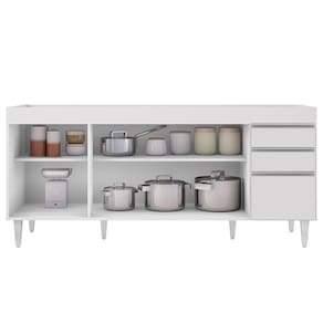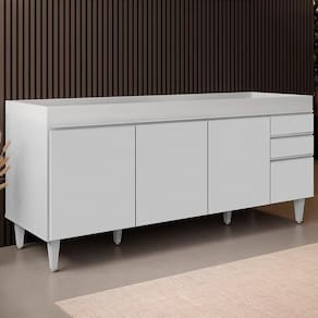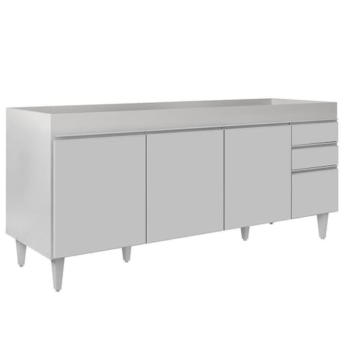 Fabricado em MDP com acabamento em pintura UV, o Balcão Gabinete Dallas é uma excelente opção para quem tem uma cozinha com amplo espaço disponível para louça, panelas e demais acessórios utilizados neste ambiente que podem ser aproveitados da melhor maneira. Além da estrutura, também conta com pés reguláveis em PVC, 4 portas convencionais com puxador em alumínio embutido e 1 prateleira interna. Além é claro, de 2 gavetas na lateral também com puxadores embutidos para facilitar o manuseio e com corrediças metálicas e espaço ótimo para guardar seus talheres e utensílios. Ah, não possui tampo, mas pode formar conjunto com tampo ou pia vendidos separadamente.