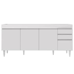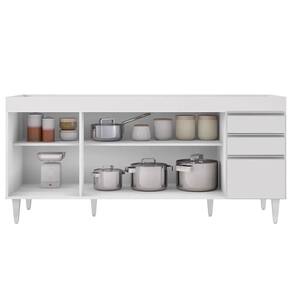 Balcão Gabinete Para Pia 180cm Sem Tampo Dallas Branco - Lumil Em um cômodo que exige funcionalidade, o Balcão para cozinha Dallas é a escolha perfeita! Conheça os motivos! Fabricado em MDP com acabamento em pintura UV, o Balcão Gabinete Dallas é uma excelente opção para quem tem uma cozinha com amplo espaço disponível para louça, panelas e demais acessórios utilizados neste ambiente que podem ser aproveitados da melhor maneira. Além da estrutura, também conta com pés reguláveis em PVC, 4 portas convencionais com puxador em alumínio embutido e 1 prateleira interna. Além é claro, de 2 gavetas na lateral também com puxadores embutidos para facilitar o manuseio e com corrediças metálicas e espaço ótimo para guardar seus talheres e utensílios. Ah, não possui tampo, mas pode formar conjunto com tampo ou pia vendidos separadamente.