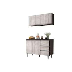 Balcão Gabinete Para Pia Andreia E Armário Aéreo Andreia 120 Cm Marrom