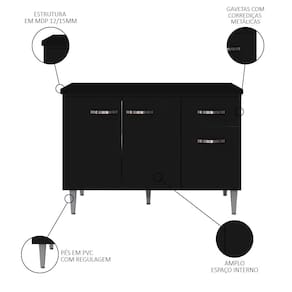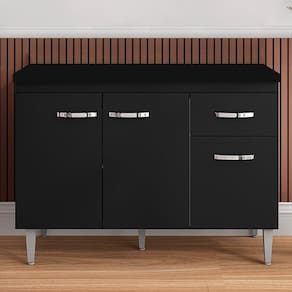 Conheça o Balcão Gabinete Com Tampo 120cm 3 Portas e 1 Gaveta Gabriela Preto, da AJL. Prático e funcional, para auxiliar no seu dia a dia!