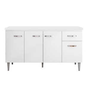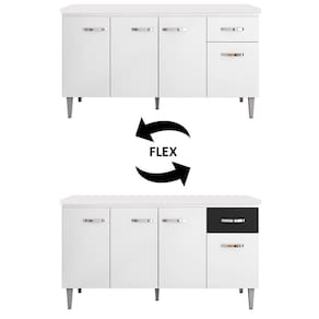 Conheça o Balcão Gabinete Com Tampo 150cm 4 Portas e 1 Gaveta Gabriela Branco, da AJL. Prático e funcional, para auxiliar no seu dia a dia!