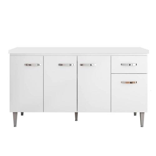 MDPConheça o Balcão Gabinete Com Tampo 150cm 4 Portas e 1 Gaveta Gabriela Branco, da AJL. Prático e funcional, para auxiliar no seu dia a dia!