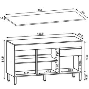 Balcão: 150 cm x 84,5 cm x 51,8 cm.