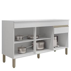 O Balcão Gabinete acompanha tampo de 150cm para apoio de utensílios ou eletroportáteis, uma gaveta e três portas, ele permite guardar utensílios e mantimentos de forma organizada e aproveitar o espaço. O Balcão Para Pia, além de lindo ele é feito de material resistente, portas com dobradiças 100% metálicas que garante mais segurança e qualidade ao produto, tem um design moderno e pode combinar com diferentes estilos de decoração, puxadores em perfil alumínio com pintura epóxi e prateleira interna que permitem melhor organização dos itens, aplicação de textura sensível ao toque e acabamento de pintura com secagem em luzes UV.