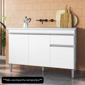 Balcão Gabinete Para Pia Sem Tampo 120cm 3 Portas e 1 Gaveta Tatiane Branco - AJL Móveis