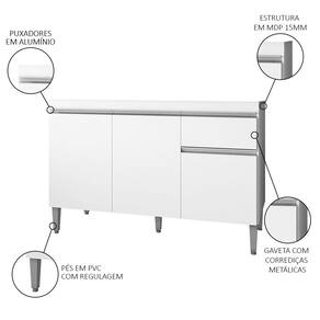 Este é o balcão ideal para a sua cozinha, compacto, prático e funcional confira o Balcão Gabinete Para Pia Sem Tampo 120cm 3 Portas e 1 Gaveta Tatiane Branco, da AJL Móveis!