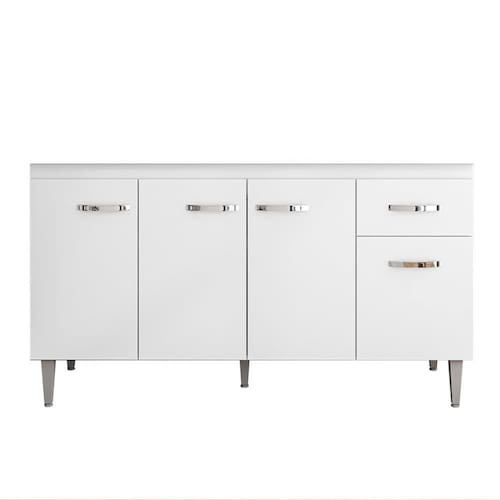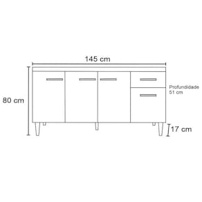 Esse Balcão de Cozinha tem um design moderno e elegante, possui 4 portas e 1 gaveta com puxadores em plástico resistente que facilitam a abertura e o fechamento das portas e da gaveta. O balcão tem espaço suficiente para guardar seus utensílios de cozinha, louças e produtos de limpeza, e conta também com 1 prateleira interna mantendo tudo organizado e à mão, ele não acompanha tampo/pia, para que você tenha a opção de escolher o que mais se adapta a sua necessidade. Além disso, o Balcão Gabinete Para Pia é feito em MDP material resistente e durável, para garantir mais qualidade para a sua Cozinha.