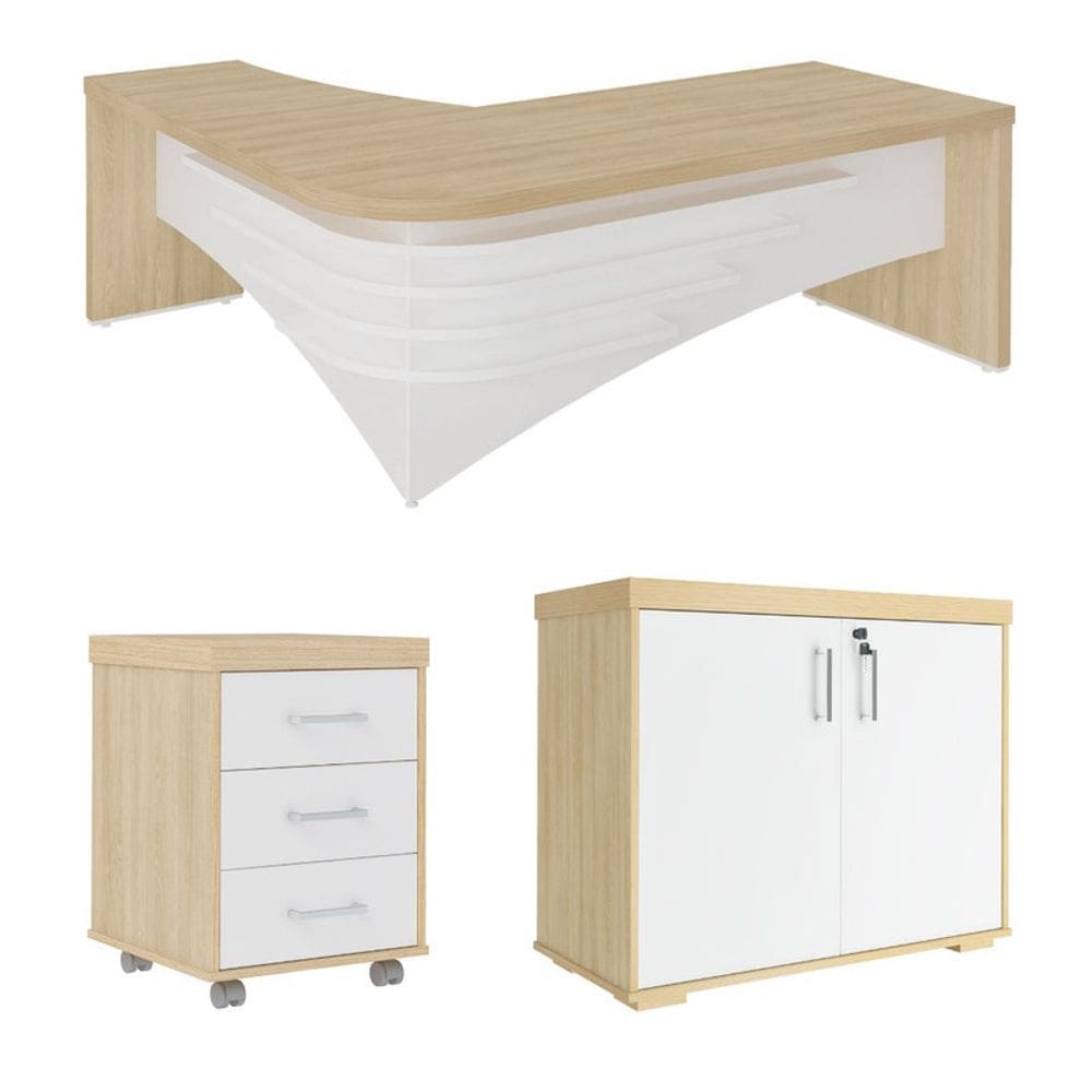 Conjunto de Escritório Office 3 Peças Mesa Gaveteiro Balcão Oslo