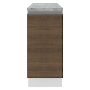 - Internamente possui 1 prateleira e contempla o tampo do balcão. Os pés são em PVC com regulagem de altura e rodapé removível de madeira de fácil encaixe.