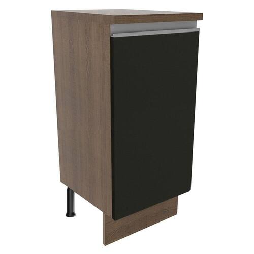 Possui uma porta convencional com puxador em alumínio e dobradiças metálicas com amortecimento para o fechamento suave. Internamente tem uma prateleira e contempla o tampo do balcão. Os pés são em PVC com regulagem de altura e rodapé removível de madeira de fácil encaixe.