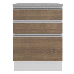 - Possui três gavetas grandes, sendo a última mais profunda.