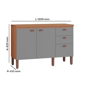 Balcão Grande Cozinha Jéssica New 100% MDF Tuboarte 2 Portas 3 Gavetas - Grafite