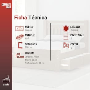 DIMENSÕES DO PRODUTO: Altura: 90 cm Largura: 70 cm Profundidade: 50 cm