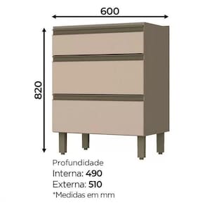 Balcão Connect C63 3 Gavetas 60 cm Henn.