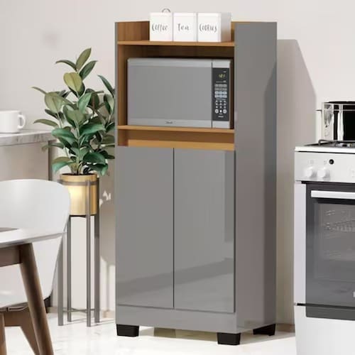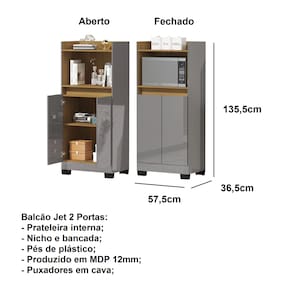 Se você está procurando um móvel que seja versátil e funcional, o Armário Multiuso Balcão Microondas JET é a escolha perfeita para você! Com um design moderno, inteligente e elegante, este móvel oferece um amplo espaço interno para acomodar diversos objetos, além de uma prateleira interna e um nicho específico para acomodar seu forno microondas com segurança. As 2 portas do armário possuem dobradiças metálicas de alta qualidade, que garantem o fechamento suave e silencioso do móvel. A estrutura do armário é feita em MDP de 12mm, o que garante resistência e durabilidade, além de ser fácil de limpar. Além disso, a instalação deste armário é super fácil e rápida, permitindo que você possa desfrutar