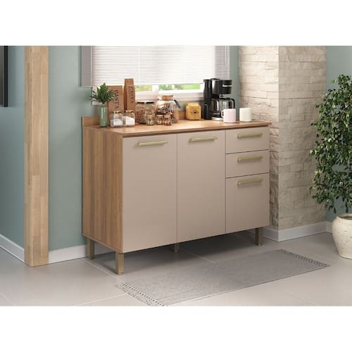 O Balcão Luciane 3 Portas 2 Gavetas 1,20 Sem Tampo, da renomada marca LUCIANE COZINHAS, é uma peça essencial para quem busca organização e estilo na cozinha. Ideal para ambientes que já possuem bancada ou que irão receber um tampo personalizado, este móvel se destaca pela sua versatilidade e design sofisticado. Fabricado com materiais de alta qualidade, garante durabilidade e resistência para o uso diário. Com suas 3 portas espaçosas e 2 gavetas práticas, oferece ampla capacidade de armazenamento para utensílios, panelas e demais itens culinários, mantendo sua cozinha organizada e funcional. A largura de 1,20 metros é perfeita para aproveitar o espaço sem abrir mão da elegância. A LUCIANE COZINHAS é conhecida por seu compromisso com a qualidade e inovação em seus produtos, fazendo do Balcão Luciane 3 Portas 2 Gavetas uma escolha acertada para quem deseja renovar o ambiente com um móvel que combina praticidade e beleza. MODELO: Luciane Corpo/Caixaria: MDP - Carvalho Uv Frontal: Cinammon PF Dobradiça: de 35mm com amortecimento Puxador: Ps Gold Corrediça: telescópicas Pés: em PS Champagne Altura: 87 cm Largura: 120 cm Profundidade: 53 cm Peso: 41,4 Kg Garantia: 3 meses