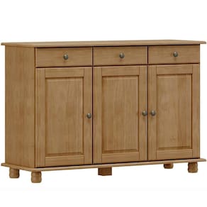 Apresentamos o Balcão 3 Portas e 3 Gavetas, um móvel que combina elegância e funcionalidade para complementar sua decoração. Produzido em madeira maciça de pinus de reflorestamento, sua estrutura robusta garante durabilidade e resistência. As portas possuem dobradiças com amortecimento que evitam barulhos incômodos, e as gavetas com corrediças telescópicas proporcionam abertura suave e máxima praticidade para guardar itens menores. Sua pintura acetinada com verniz PU e UV, realça a beleza natural da madeira enquanto protege contra desgastes do dia a dia, e os puxadores metálicos adicionam um toque moderno ao design clássico do produto. Os pés torneados em madeira maciça, garantem estabilidade e charme artesanal ao móvel. Este móvel chegará em sua casa separado em 01 volume.
