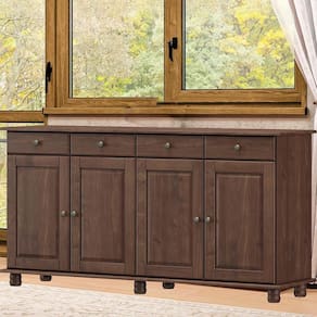 Apresentamos o Balcão 4 Portas e 4 Gavetas, um móvel que combina elegância e funcionalidade para complementar sua decoração. Produzido em madeira maciça de pinus de reflorestamento, sua estrutura robusta garante durabilidade e resistência. As portas possuem dobradiças com amortecimento que evitam barulhos incômodos, e as gavetas com corrediças telescópicas proporcionam abertura suave e máxima praticidade para guardar itens menores. Sua pintura acetinada com verniz PU e UV, realça a beleza natural da madeira enquanto protege contra desgastes do dia a dia, e os puxadores metálicos adicionam um toque moderno ao design clássico do produto. Os pés torneados em madeira maciça, garantem estabilidade e charme artesanal ao móvel. Este móvel chegará em sua casa separado em 01 volume.