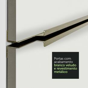 O acabamento da estrutura é branco e as portas são em Branco Veludo. O método utilizado é a Pintura Poliéster ecológica com 7 camadas que protegem o móvel dos efeitos da água e do calor.