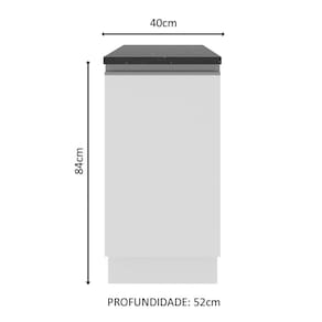 - Um (1) balcão de 84 cm de altura x 40 cm de largura x 52 cm de profundidade com uma (1) porta, uma (1) prateleira interna e tampo.