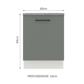 Itens inclusos: - Um (1) Balcão de 84 cm de altura x 60 cm de largura x 52 cm de profundidade com uma (1) porta, uma (1) prateleira interna e tampo em pintura Mood