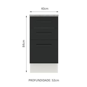 Este balcão de 40cm da linha Agata da Madesa conta com três gavetas, sendo a última mais profunda.