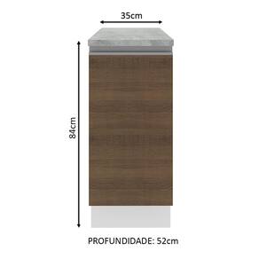- Um (1) balcão de 84 cm de altura x 35 cm de largura x 52 cm de profundidade com uma (1) porta, uma (1) prateleira interna e tampo.