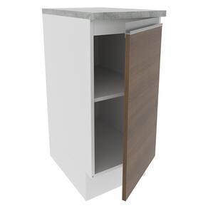 Possui uma porta convencional com puxador em alumínio e dobradiças metálicas com amortecimento para o fechamento suave. Internamente tem uma prateleira e contempla o tampo do balcão. Os pés são em PVC com regulagem de altura e rodapé removível de madeira de fácil encaixe.