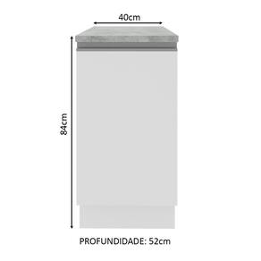 - Um (1) balcão de 84 cm de altura x 40 cm de largura x 52 cm de profundidade com uma (1) porta, uma (1) prateleira interna e tampo.