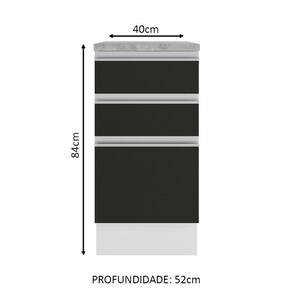 O Balcão com três gavetas de 40 cm da Madesa é feito com materiais de alta qualidade e Pintura Poliéster com 7 camadas protetoras que aumentam a resistência e durabilidade do móvel.
