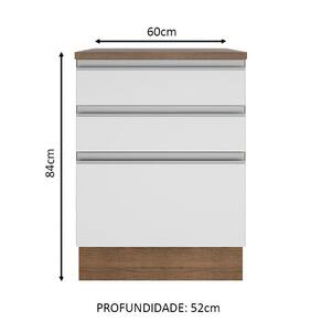 O Balcão com três gavetas de 60 cm da Madesa é feito com materiais de alta qualidade e Pintura Poliéster com 7 camadas protetoras que aumentam a resistência e durabilidade do móvel.