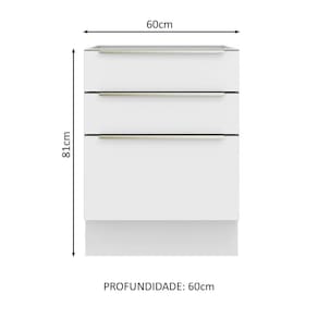 O Balcão de 60 cm com três gavetas da linha Lux da Madesa é ótimo para armazenar de forma organizada mantimentos, utensílios de cozinha e louças.