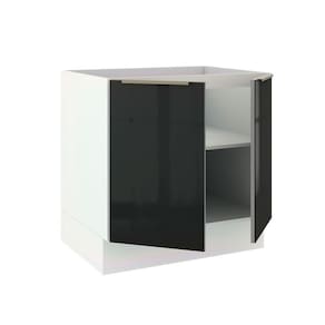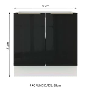 Balcão Madesa Lux 80cm 2 Portas Branco Preto