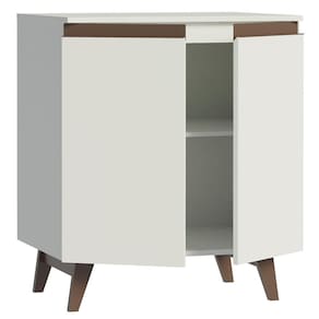 Conta com duas portas convencionais e o design é atual, pensado para o total aproveitamento do espaço. A disposição interna é perfeita para colocar panelas, utensílios, louça, talheres e pano de prato.
