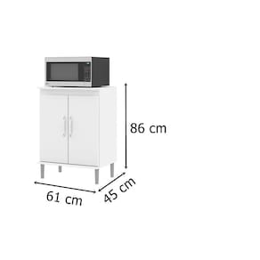 O Balcão Microondas - EJ Móveis possui design clássico, complementando a decoração da sua cozinha. Todo produzido em MDP com pés, garantindo maior durabilidade do produto. Pensando na maior organização dos seus objetos, ele conta com duas portas, com amplo espaço interno e bem dividido com prateleira central.