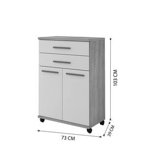 O Balcão Mônaco é perfeito para diversos ambientes e funcionalidades. Utilize para organizar sua cozinha, área de serviço, etc. Com este produto prático e versátil, projetado para dar trazer mais beleza ao seu ambiente com comodidade e qualidade. O produto possui 2 portas com dobradiças metálicas, 2 gavetas amplas, prateleira interna e rodízios para facilitar a locomoção, tudo isso para garantir mais facilidade no seu dia a dia. Este balcão foi desenvolvido para combinar com qualquer decoração, deixando o seu ambiente mais bonito e funcional\nEspecificações o Produto Montado:\nAltura: 103 cm Largura: 73 cm Profundidade: 39 cm Peso: 32Kg Quantidade de Volume: 1\nGarantia: 3 meses Material da estrutura: MDF 18mm Tampo e base em 25 mm Número de Portas: 02 Número de Gavetas: 02 Número de Prateleiras: 01 Rodizio incluso: Sim\nAtenção: Não oferecemos serviço de montagem, mas todos os produtos possuem manual de montagem com o passo a passo. Recomendamos contratar um profissional de montagem. Pode existir diferença de tonalidade entre a foto e o produto devido ao tratamento da imagem e à calibração de cores do monitor Itens que decoram o ambiente nas imagens não acompanham o produto