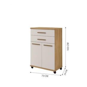 Balcão Mônaco Arte Móveis 2 Portas 2 Gaveta Cinamomo/off White Balcão de Cozinha 2 Portas 2 Gavetas Mônaco Arte Móveis Este balcão é perfeito para diversos ambientes e funcionalidades. Utilize para organizar sua cozinha, área de , etc. Com este produto prático e versátil, projetado para dar trazer mais beleza ao seu ambiente com comodidade e qualidade. O produto possui 2 portas com dobradiças metálicas, 2 gavetas amplas, prateleira interna e rodízios para facilitar a locomoção, tudo isso para garantir mais facilidade no seu dia a dia. Este balcão foi desenvolvido para combinar com qualquer decoração, deixando o seu ambiente mais bonito e funcional.